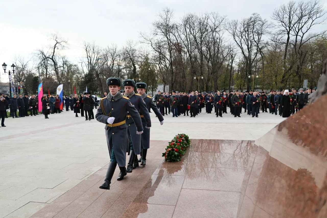 В сквере Героев Отечества краевой столицы состоялось торжественное открытие мемориального комплекса «Воинам Отечества – Героям России». Об этом сообщает пресс-служба администрации Краснодарского края.